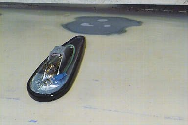 ![]() | Here is the light in place. You can see where we Bondo'd the old location. The lights were moved down to make room for the planned addition of a low-profile air conditioner later. Please note the ground wire under
