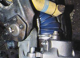 ![]() | Here is the almost completed installation. Almost because the hose is still too close to the CV joint boot. It was removed and bent slightly more for clearance. |
