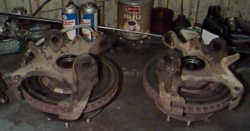 ![]() | The new bearings have been packed and installed into the hubs along with the new seals. The rotors are attached and the rotor/hub assemblies are ready to be reinstalled. |
