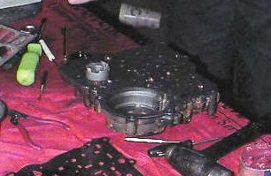 The first step after removing the transmission pan and valve body is to clean all the parts as thoroughly as possible. | |