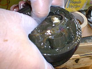 ![]() | I'm using Redline CV-2 synthetic grease - others use Mobil1 grease with satisfactory results. The joint gets packed completely, being careful to eliminate any air pockets. If you use the grease packets that come with most kits, use just enough grease to fill the joint and the folds of the boot. Using too much grease will cause overpressure in the joint resulting in grease leaking from the joint or the boot popping out of the retaining groove. |